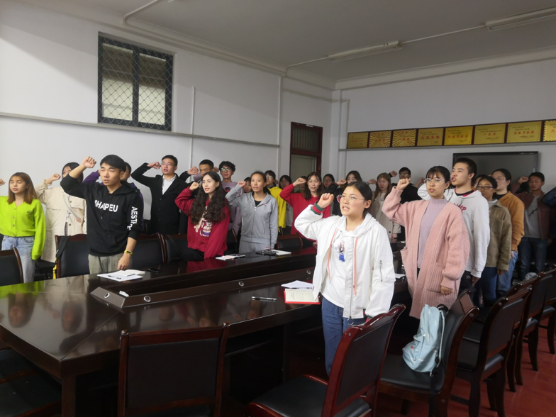会上,支部全体党员集体面对当期进行庄严宣誓,并由支部正式党员为支部新成员发放党章,大会正式拉开序幕。