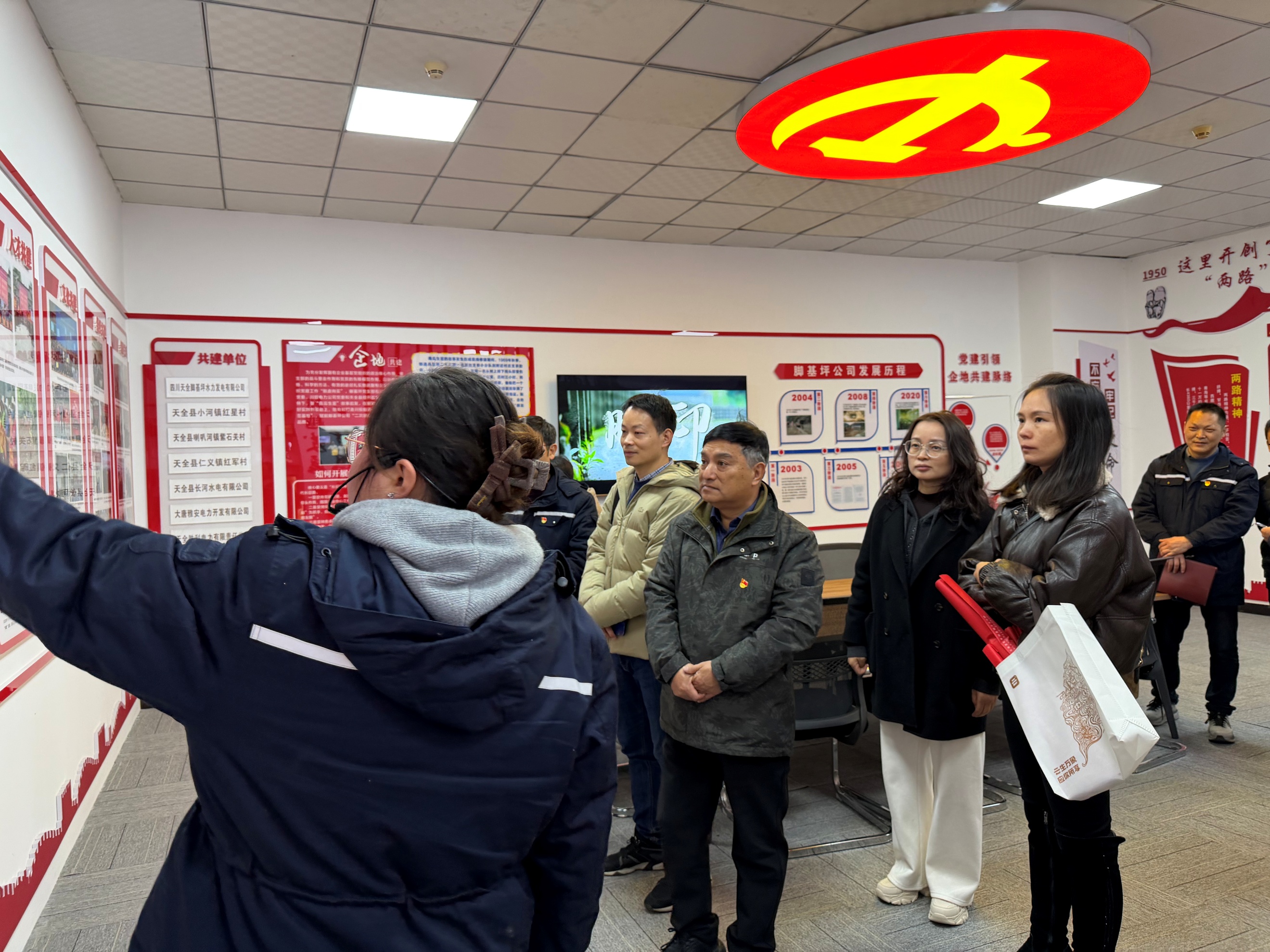 在川投能源脚基坪“企地共建”示范基地,宣讲员为党员们详细介绍了脚基坪水电站在党建引领与业务融合上的长效机制及其取得的成效。